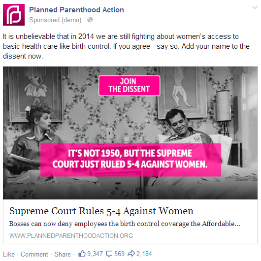 Immediately after the ruling was announced, Planned Parenthood Action Fund hit the launch button on a series of sponsored posts on Facebook. But the ads weren’t just sent out willy-nilly to anyone in the Facebook-sphere. The ads were only shown to people who aren’t already on their email list, who were modeled off of people who are active on their email list.