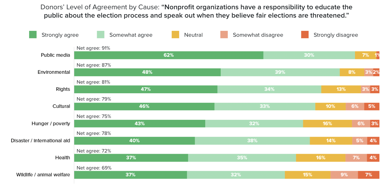 Your donors want you to speak out to protect democracy and get involved in nonpartisan voter education. We know, because we asked them.